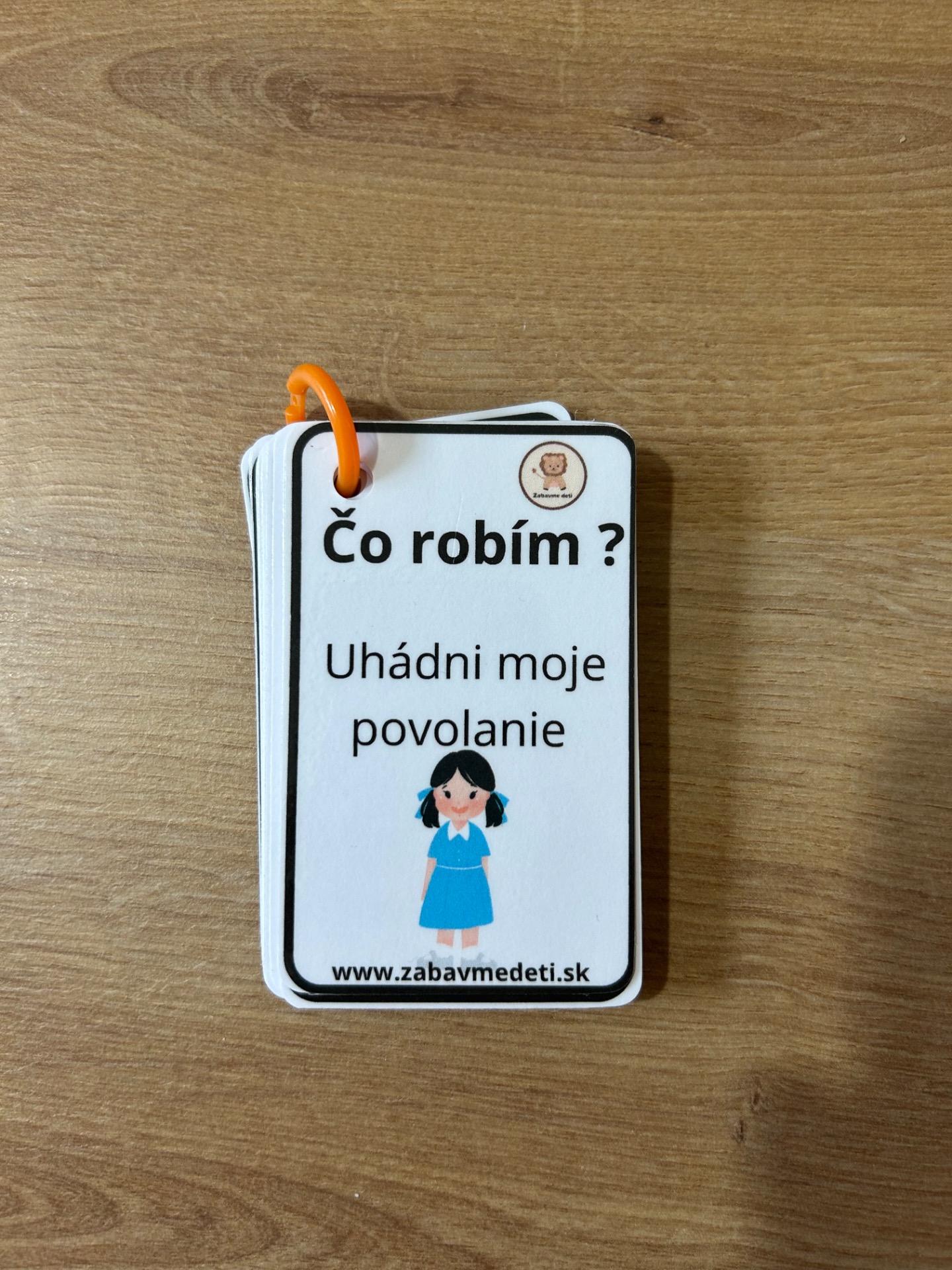 Podľa kartičiek musia deti uhádnuť povolanie.
