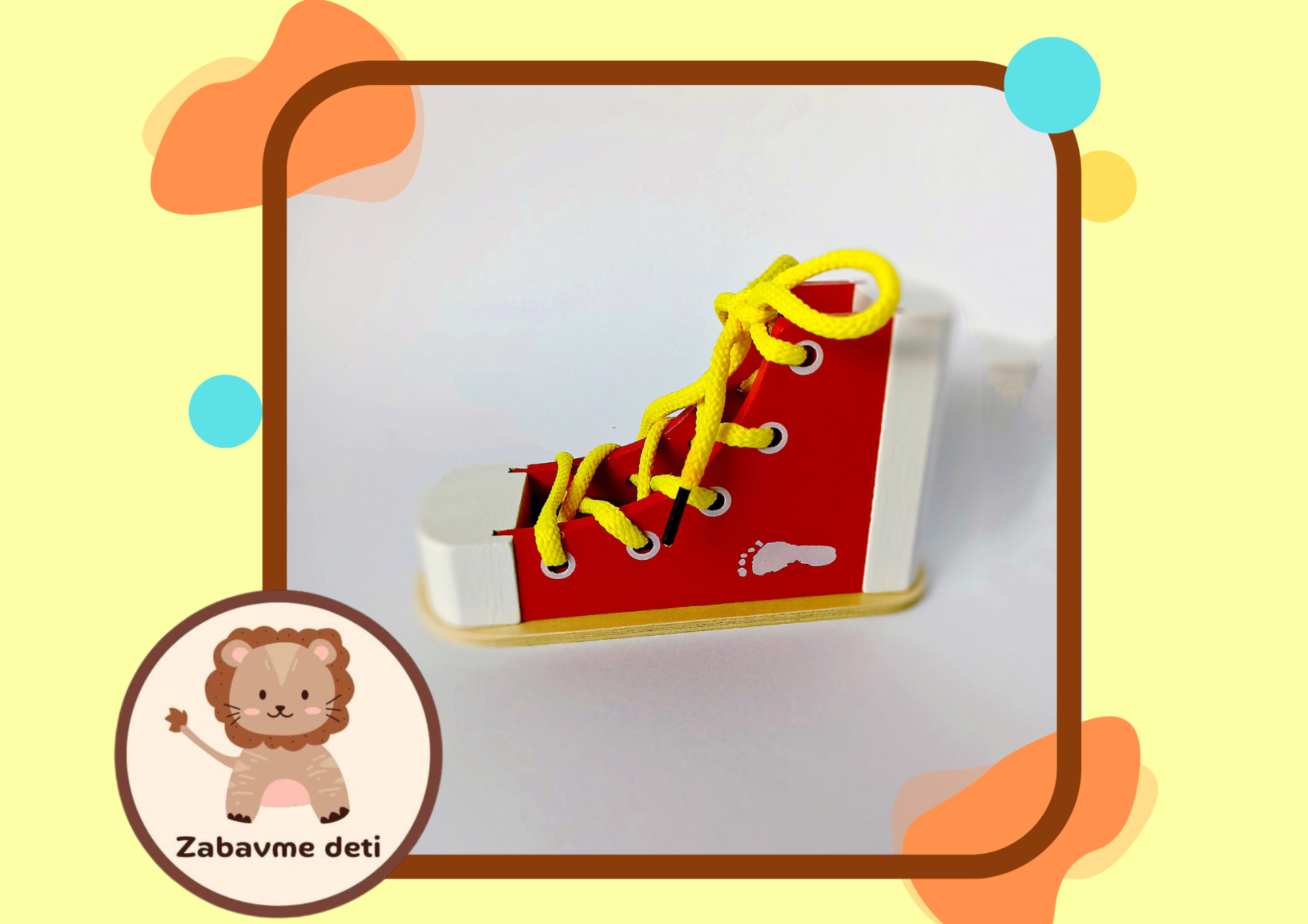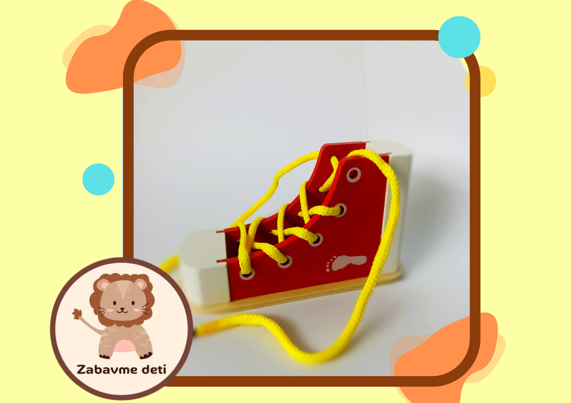 Drevená učebná topánka so šnúrkami pomáha deťom od 4 rokov hravou formou trénovať jemnú motoriku a učiť sa zaväzovať šnúrky. Ideálna pomôcka pre rozvoj samostatnosti.
