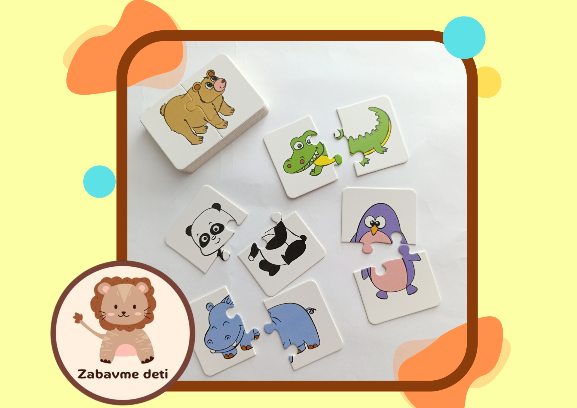 Dvojdielne puzzle so zvieratkami pomáhajú deťom rozvíjať jemnú motoriku, logiku a schopnosť spájať tvary. Vhodnú už pre deti o 1,5 roka.